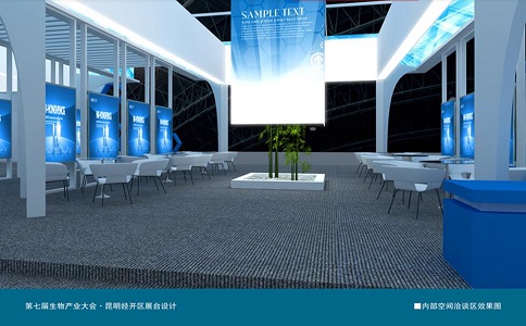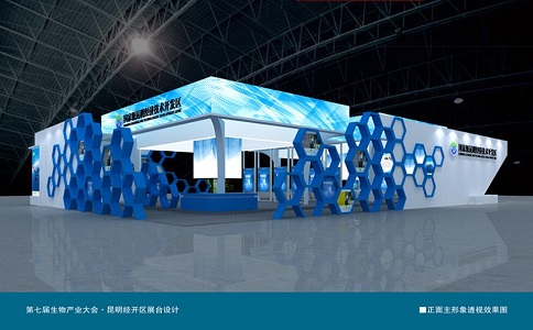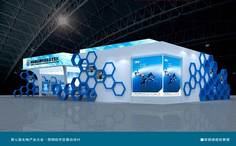 創意思路:此方案設計構思主要來源于蜜蜂的蜂巢和分子生物及生物量子還原的結構原理,經過設計師的提煉、演變、并結合此次生物產業大會的主題“生物資源,產業機遇”而產生創意靈感。