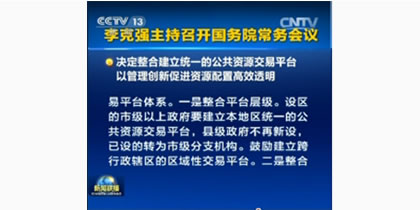 國務(wù)院總理李克強(qiáng)7月31日主持召開國務(wù)院常務(wù)會(huì)議,會(huì)議決定整合建立統(tǒng)一的公共資源交易平臺(tái),以管理創(chuàng)新促進(jìn)資源配置高效透明。在不增加企業(yè)和群眾負(fù)擔(dān)的前提下,整合分散設(shè)立的工程建設(shè)項(xiàng)目招投標(biāo)、土地使用權(quán)和礦業(yè)權(quán)出讓、國有產(chǎn)權(quán)交易、政府采購等公共資源交易市場(chǎng),2016年6月底前,地方各級(jí)政府基本完成整合工作,2017年6月底前,在全國范圍形成規(guī)則統(tǒng)一、公開透明、服務(wù)高效、監(jiān)督規(guī)范的公共資源交易平臺(tái)體系。
