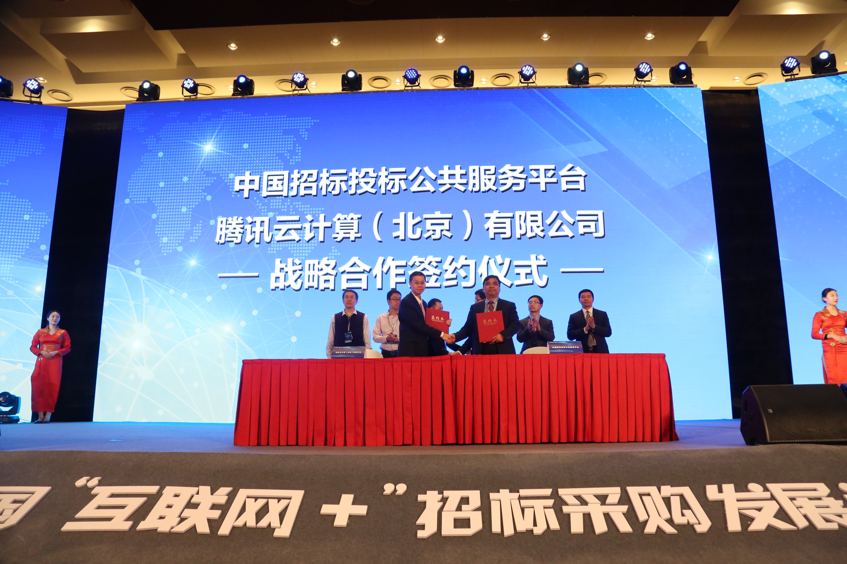 ▲中國招標(biāo)投標(biāo)公共服務(wù)平臺與騰訊云計算(北京)有限公司簽訂戰(zhàn)略合作協(xié)議